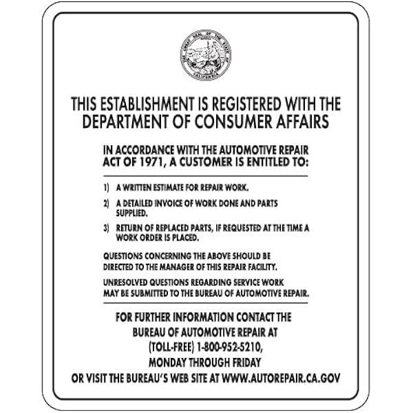 Amazon Com Stopsignsandmore Official Metal California Bureau Of Automotive Repair B A R Sign 24x30 Non Reflective Rust Free Aluminum Office Products